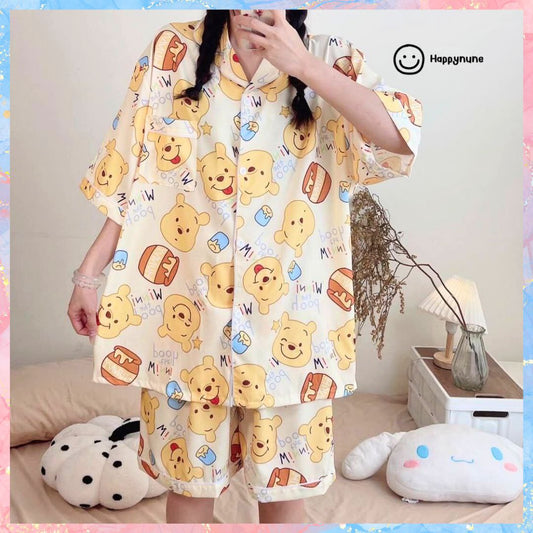 Happynune Plus Size Pajama Short Set | Button Top + Shorts
