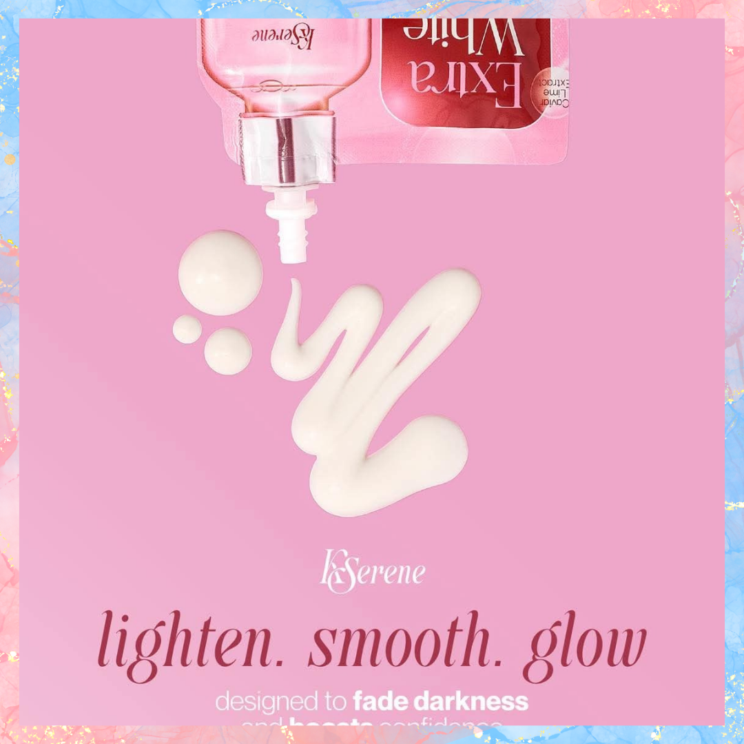 Our KSerene Extra White Underarm Serum Cream brightens dark spots, smooths rough texture, and glides on lightweight with no sticky feel. Step out boldly and let your underarms shine naturally.